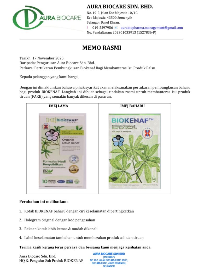 Hati-hati Produk Biokenaf® Tiruan & Yang Jamin Kesan Melampau